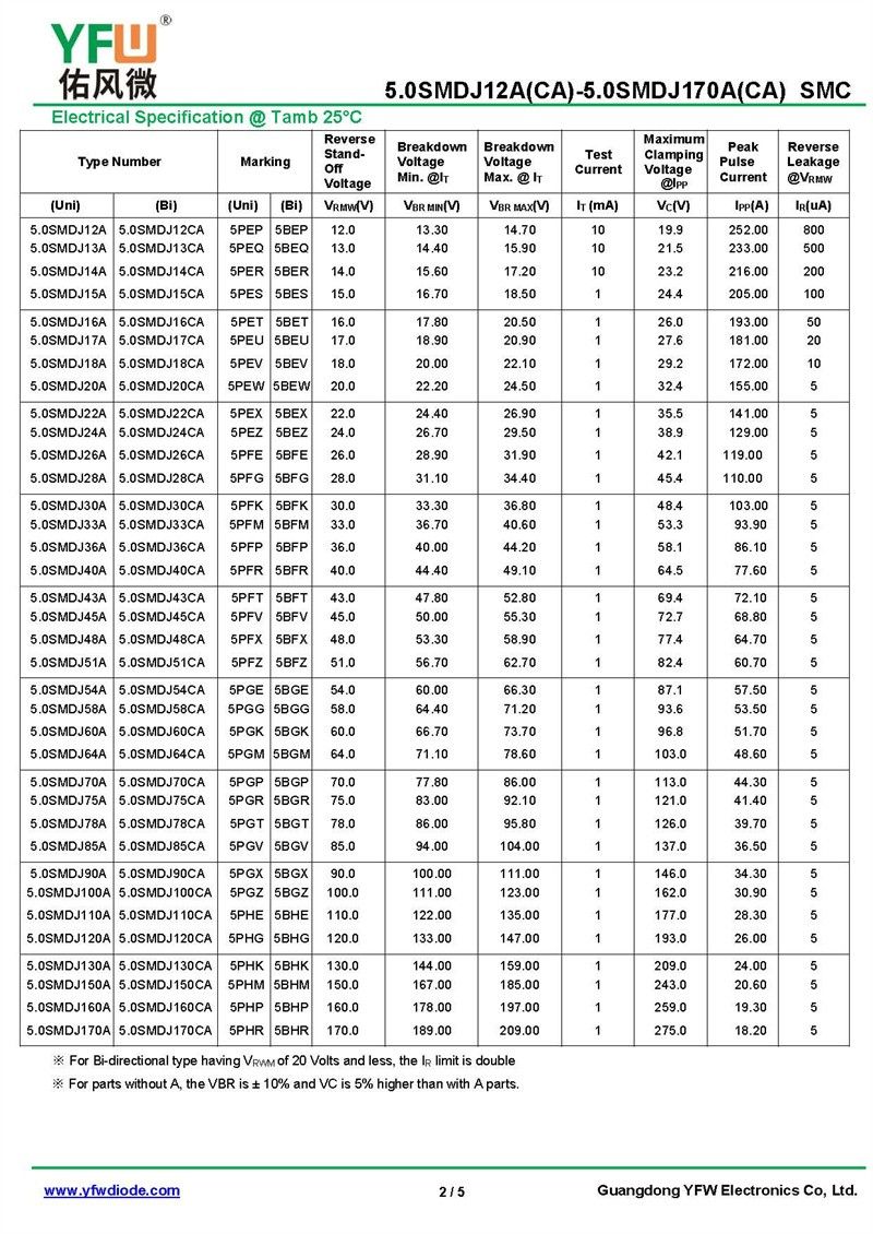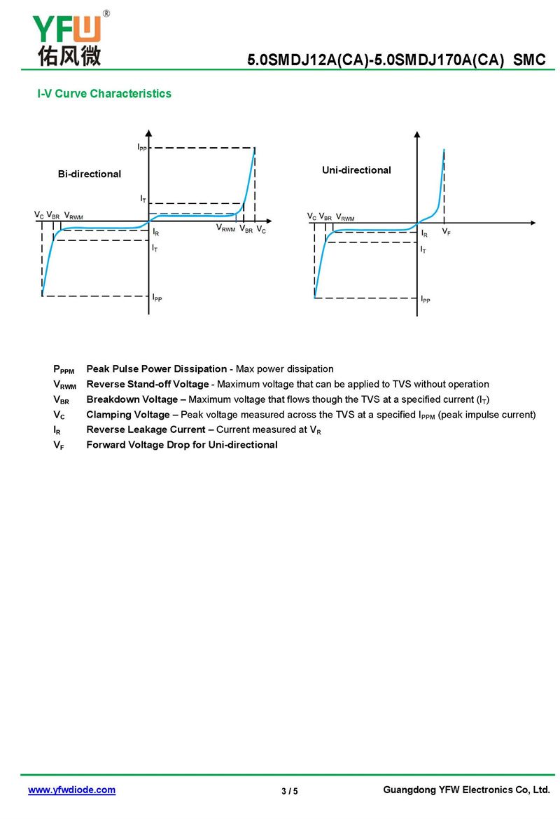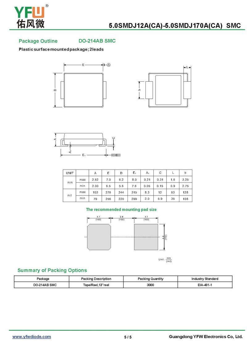 瞬態抑制二極管5.0SMDJ48CA 規格書_價格_PDF手冊-廣東佑風微原廠5.0SMDJ48CA SMC_(YFW佑風微)品牌