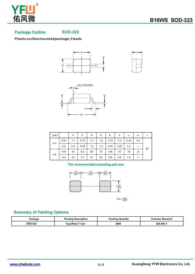 肖特基二極管1B16WS 規(guī)格書_價格_PDF手冊-廣東佑風微原廠B16WS SOD-323_(YFW佑風微)品牌