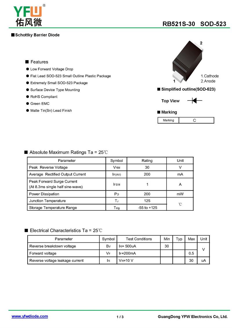 肖特基二極管RB521S-30 規(guī)格書_價格_PDF手冊-廣東佑風(fēng)微原廠RB521S-30 SOD-523_(YFW佑風(fēng)微)品牌