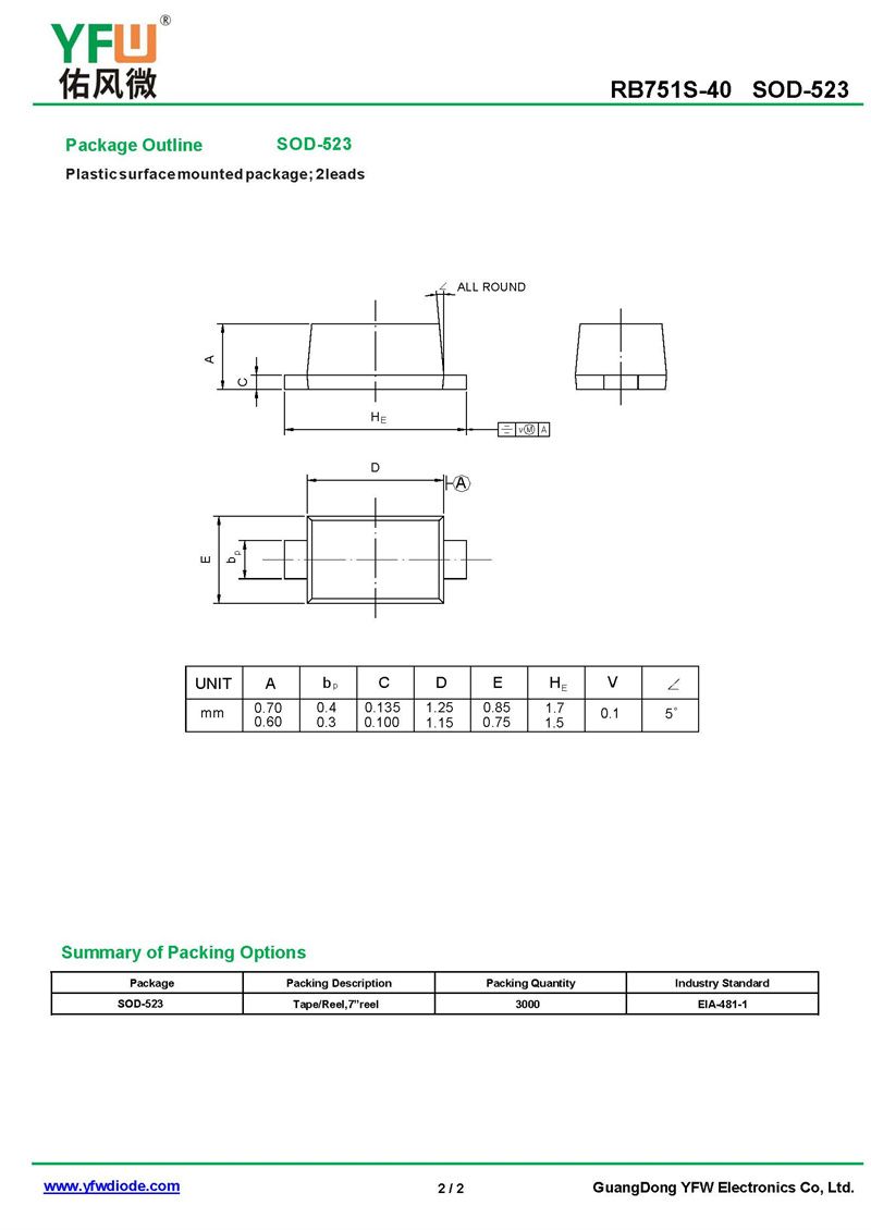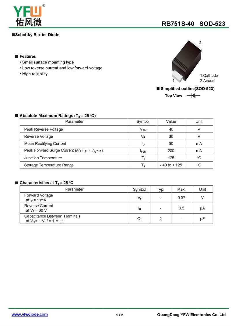 肖特基二極管RB751S-40 規格書_價格_PDF手冊-廣東佑風微原廠RB751S-40 SOD-523_(YFW佑風微)品牌