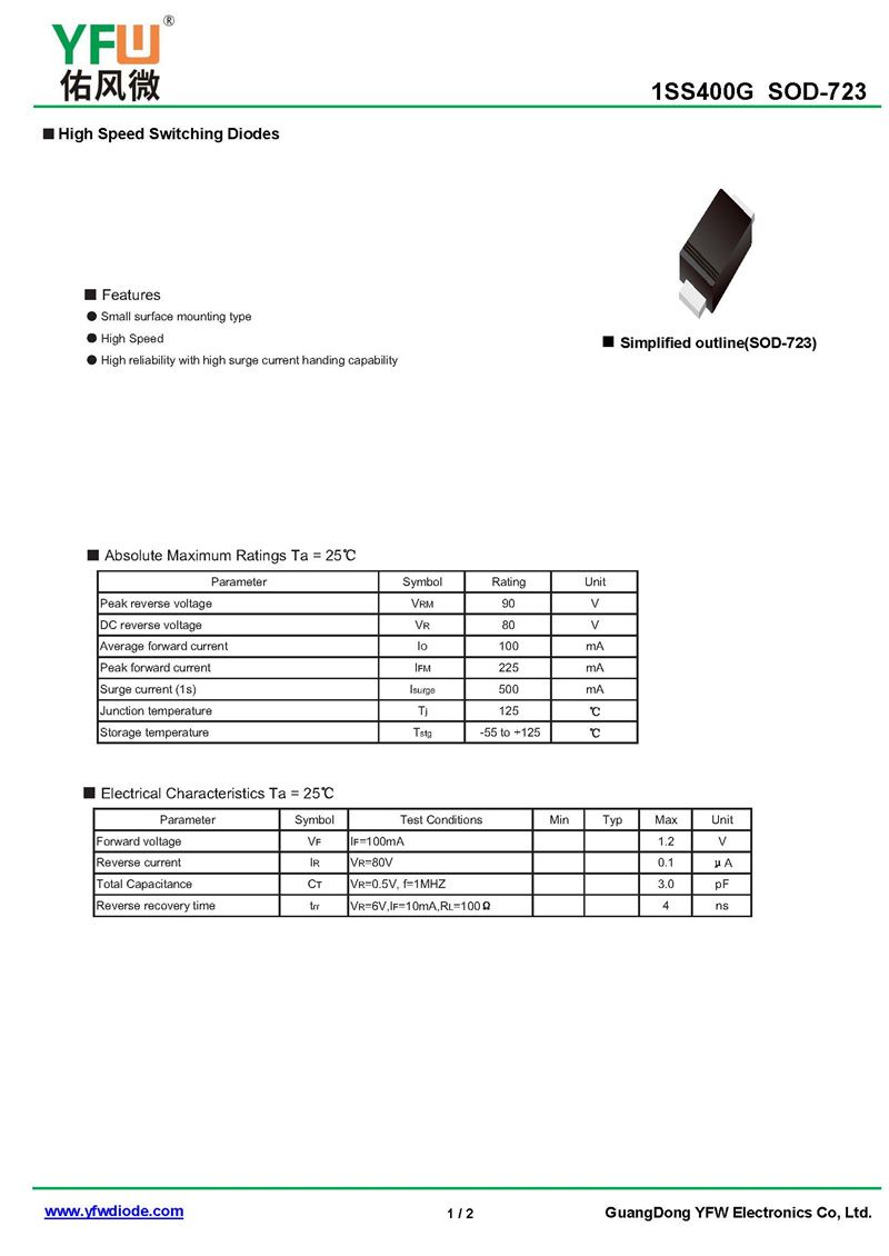 肖特基二極管1SS400G 規格書_價格_PDF手冊-廣東佑風微原廠1SS400G SOD-723_(YFW佑風微)品牌