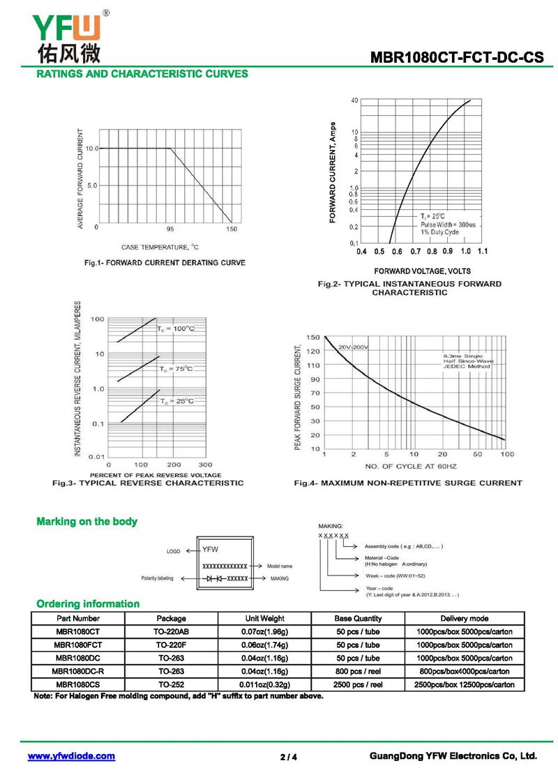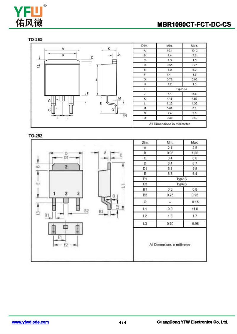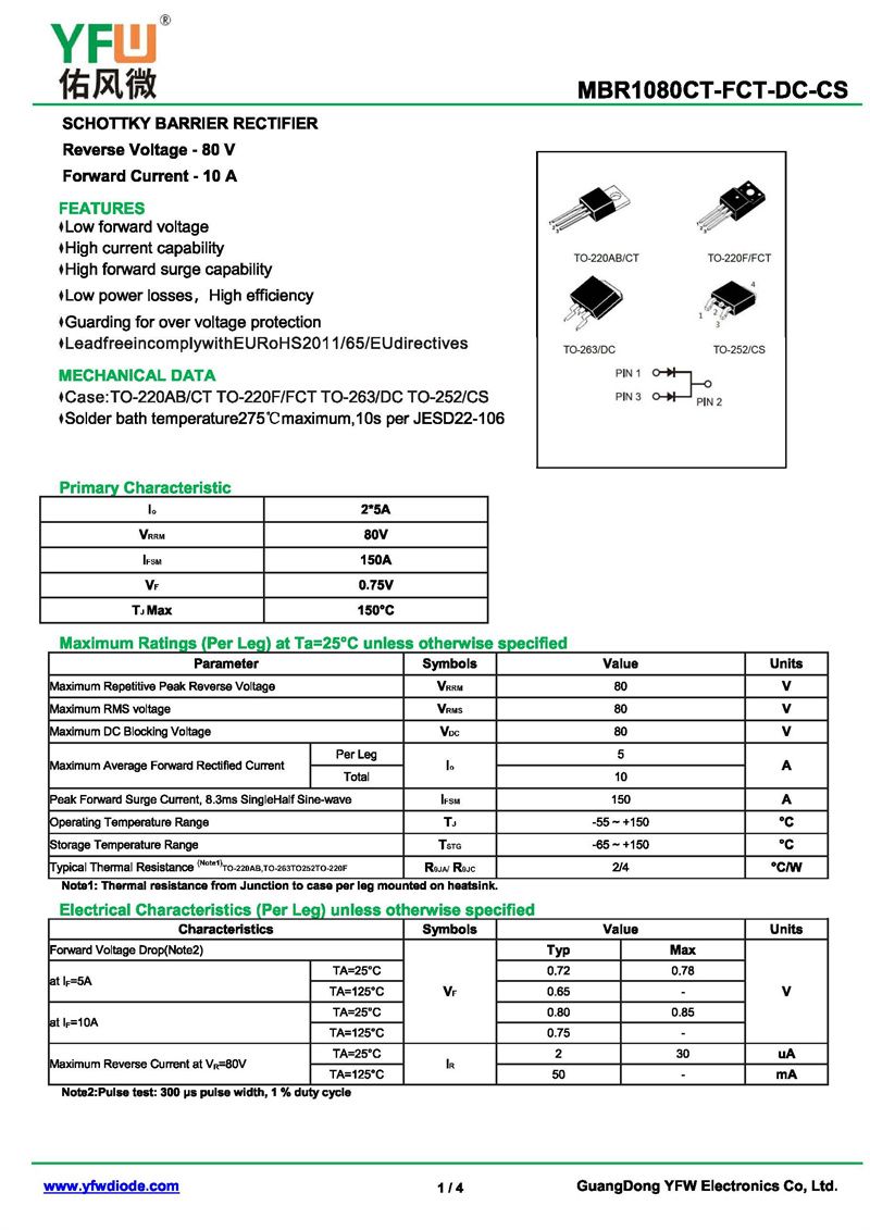 肖特基二極管MBR1080CS 規格書_價格_PDF手冊-廣東佑風微原廠MBR1080CS TO-252_(YFW佑風微)品牌