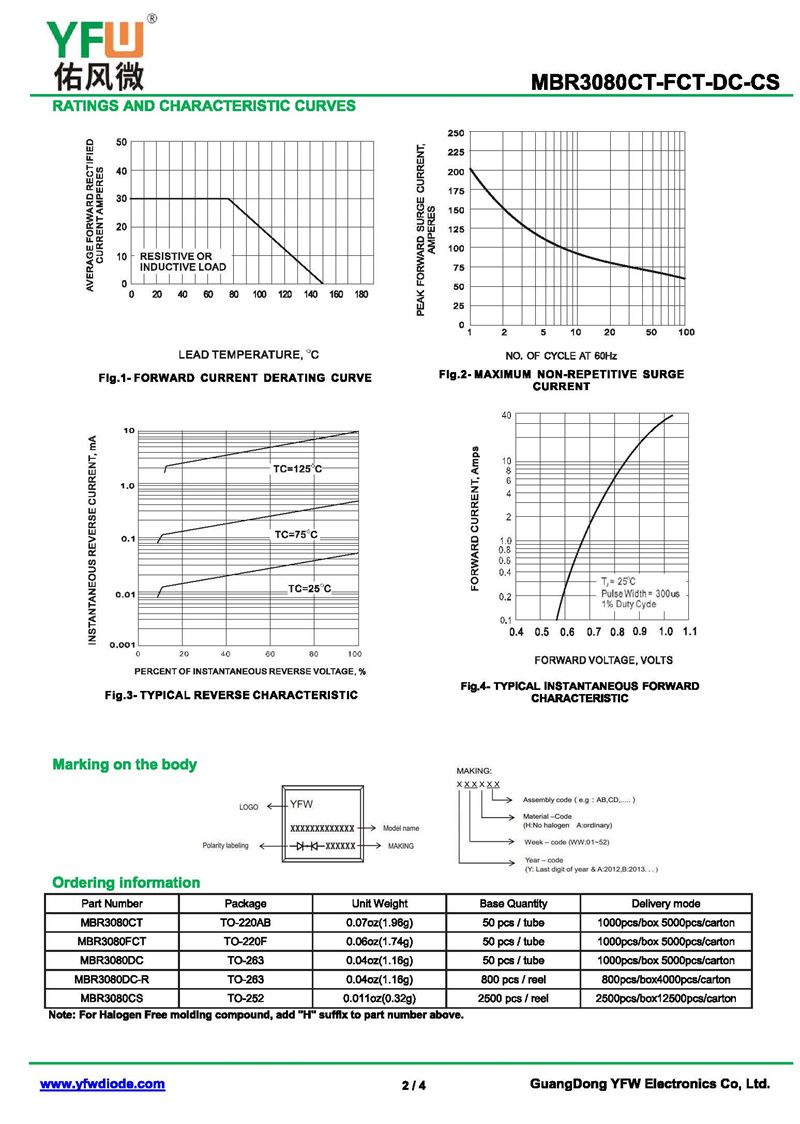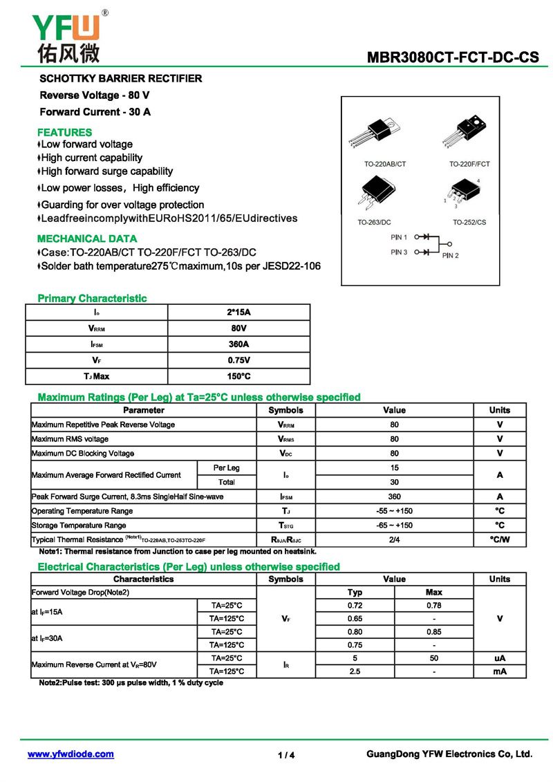 肖特基二極管MBR3080CS 規格書_價格_PDF手冊-廣東佑風微原廠MBR3080CS TO-252_(YFW佑風微)品牌