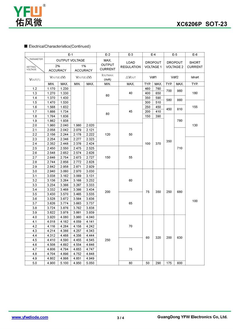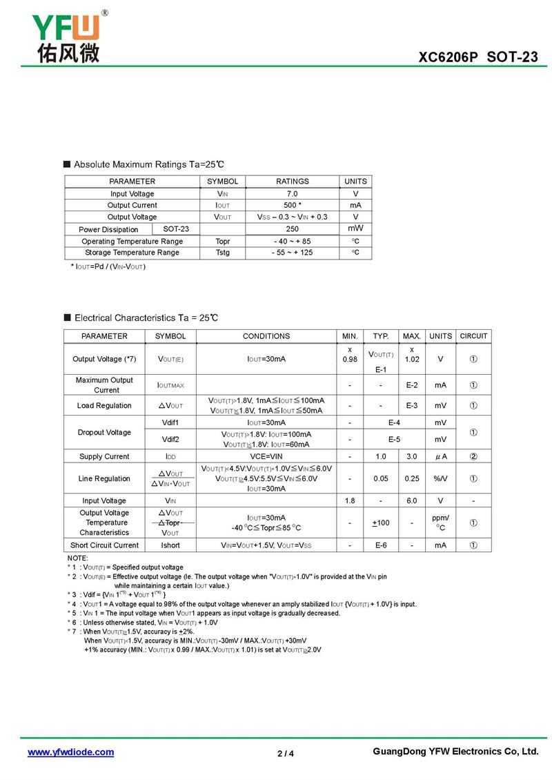 小功率穩壓管XC6206P 規格書_價格_PDF手冊-廣東佑風微原廠XC6206P SOT-23_(YFW佑風微)品牌
